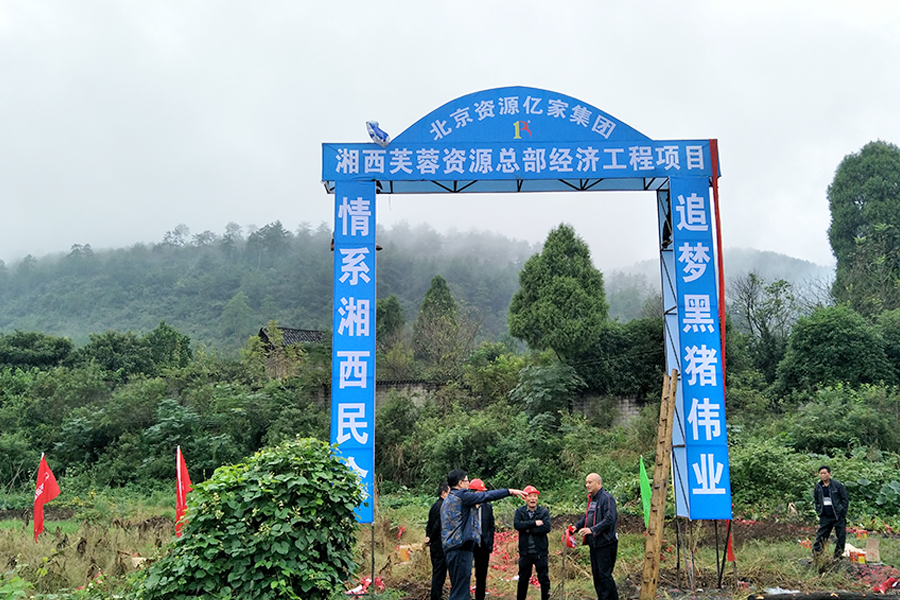 集团副总裁刘忠贻老师、湘西芙蓉资源副总裁徐国建老师、湘西芙蓉资源财务总监李彪老师、湘西黑猪养殖总经理鞠积光老师等一起庄严宣读誓词,奏乐鸣炮为项目开工奠基。