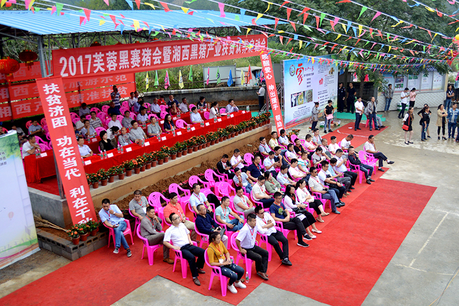 9月22日,在湘西自治州建州60周年之日,由永顺县人民政府主办,湘西州畜牧局、永顺县畜牧局、永顺扶贫开发办、世界猪业联合会的北京资源亿家集团芙蓉黑赛猪会暨湘西黑猪产业扶贫认养启动会在千年古镇——芙蓉镇成功召开。湘西州委州政府各部门领导、湘西州畜牧水产局、永顺县委县领导出席赛猪会。全国各地现场以及通过互联网400多万观众收看参与本次赛猪会,5位网红现场行网络直播,各大电视台、新闻媒体现场同步拍摄报道,一起为金色的黑猪梦加油。